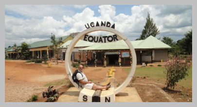 I took Joshua today, well may be he took me, to the Equator. We took a Boda Boda from Adonai 2 to Kampala Old Taxi Park. A taxi in Kampala isn’t really a taxi, it’s a mini-bus licensed to carry 14-passengers, being a bus service, but there are no bus stops. The conductor hangs out of the window shouting at anyone who happens to be along the roadside, trying to fill the bus. When I say fill the bus that’s not just 14-passengers, 18 is more common.