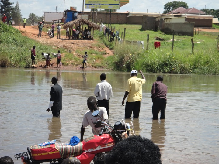 Hey Simon don't step further you'll be in the main flow; we pursuaded the boda boda to move a little to the left to wash his byke